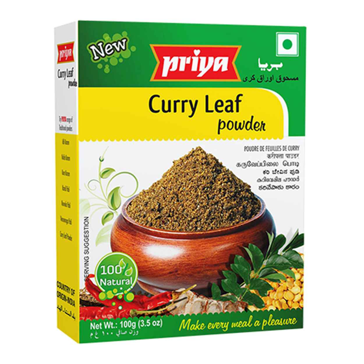 Fresh curry leaves are pounded with perfection, processed along with choice spices ultimately to bring forth a healthy and tasty gastronomic wonder called Priya Curry Leaf Powder. Just add ghee and mix with hot rice or get it on board with idlis, dosas or upma.
